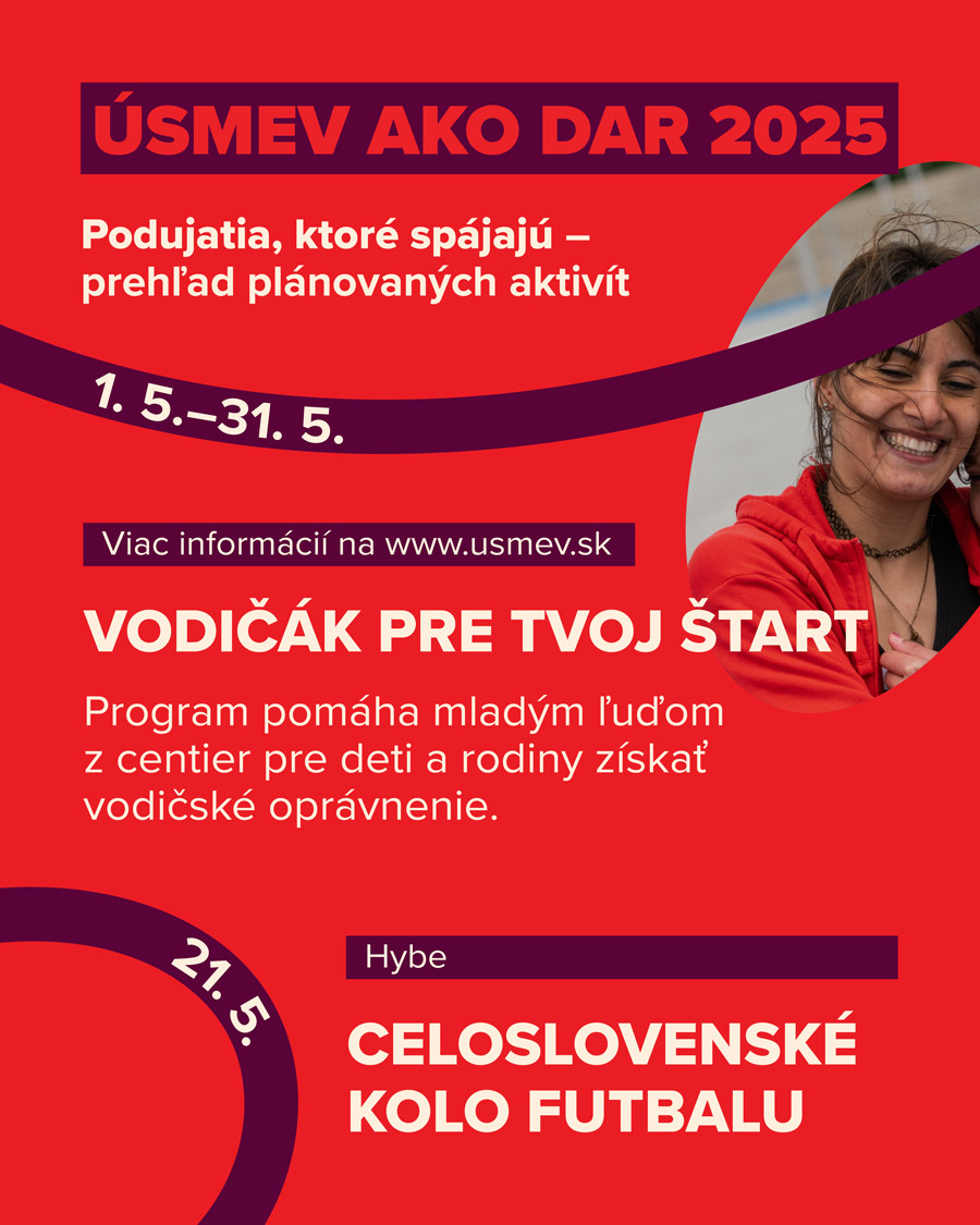 Úsmev mi dodal sebavedomie. Predtým som si robila starosti z úplných zbytočností. Na Úsmeve som uvidela inú realitu a ľudí, ktorí majú veľmi zložitú situáciu a aj napriek tomu to zvládajú. Veľmi ma to zocelilo.